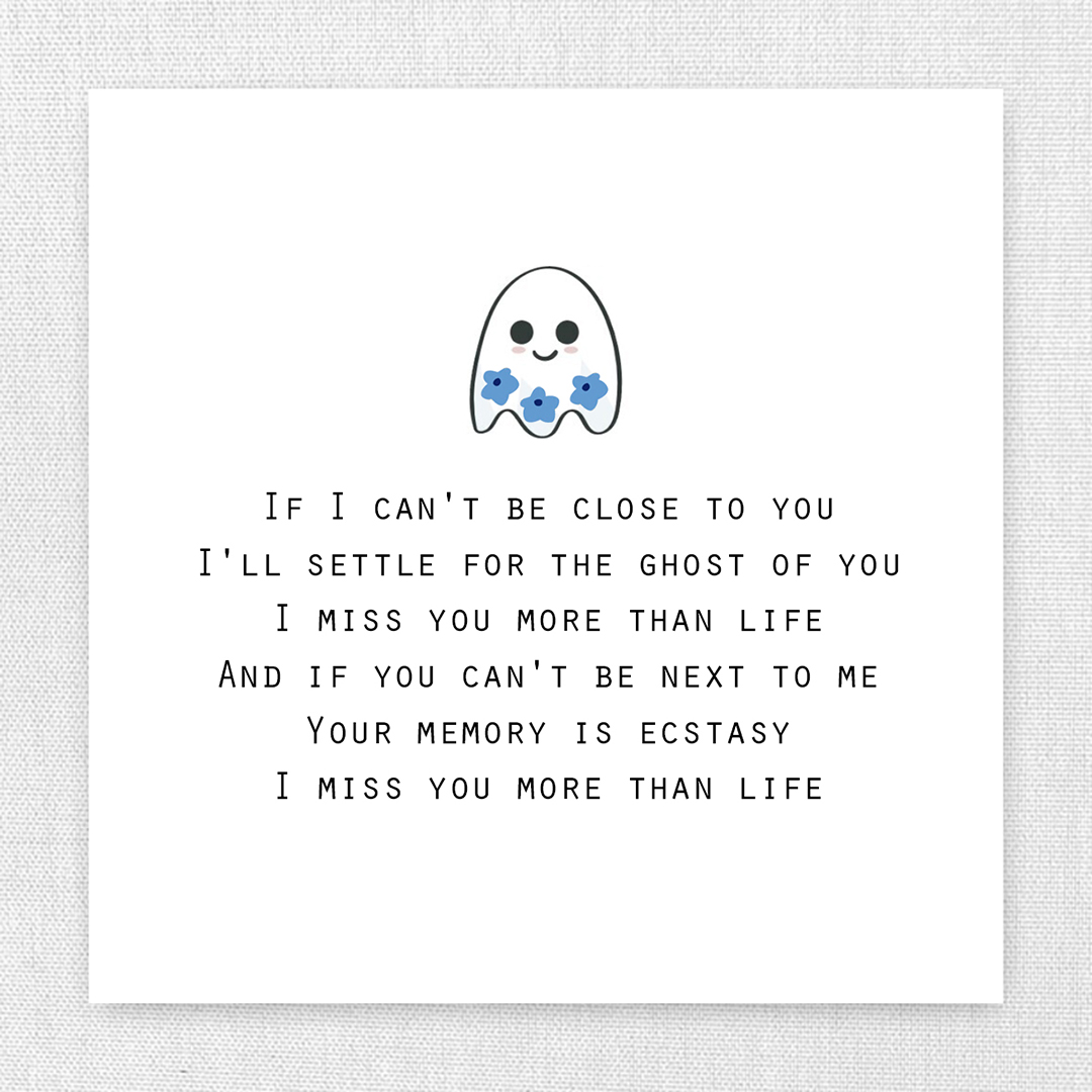 The Forget Me Not Flower Ghost Necklace captures the beauty of everlasting love and the ache of longing. Inspired by the lyrics “If I can’t be close to you, I’ll settle for the ghost of you,” it symbolizes a bond that transcends distance and time. The delicate forget-me-not blooms and ethereal glow serve as a reminder that love never truly fades — it lingers, softly, beautifully, like a memory that lives forever in your heart.