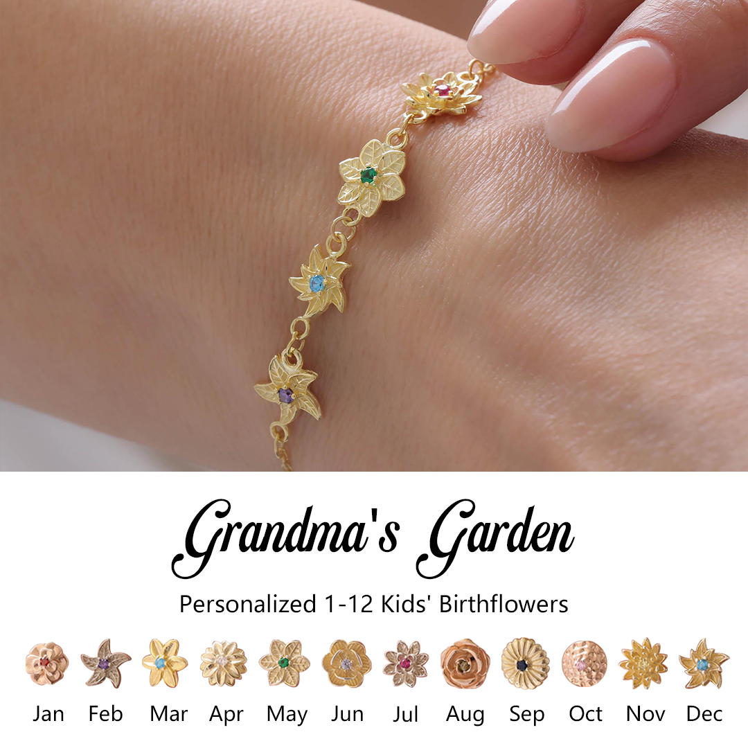 Grandma Bracelet With Kids Birthflower Bouquet Bracelet