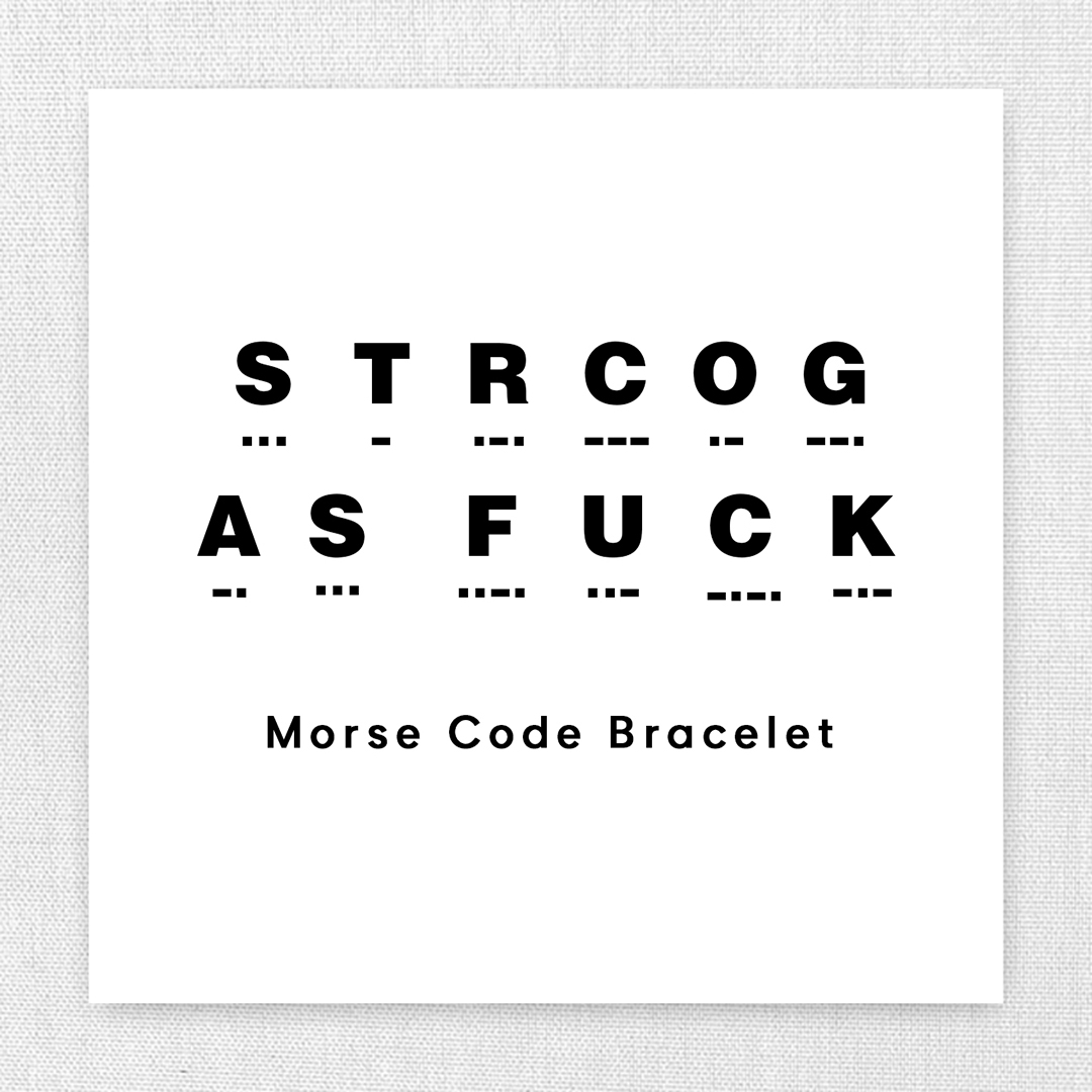 The image shows our concept piece. We will use the beads displayed in the image to create the bracelet. The final Morse code will follow this arrangement: [STRONG AS FUCK